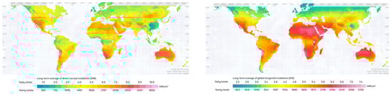 - SolarGIS. World Bank Group. 2025. Available online: https://solargis.com/resources/free-maps-and-gis-data (accessed on 13 February 2025).