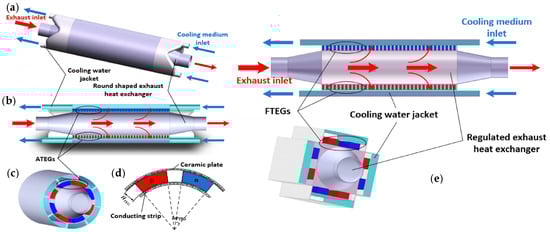 - Huang, B.; Shen, Z.-G. Performance Assessment of Annular Thermoelectric Generators for Automobile Exhaust Waste Heat Recovery. Energy 2022, 246, 123375. [Google Scholar] [CrossRef]