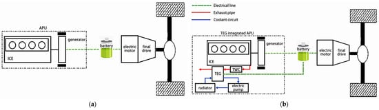 - Lan, S.; Stobart, R.; Wang, X. Matching and Optimization for a Thermoelectric Generator Applied in an Extended-Range Electric Vehicle for Waste Heat Recovery. Appl. Energy 2022, 313, 118783. [Google Scholar] [CrossRef]