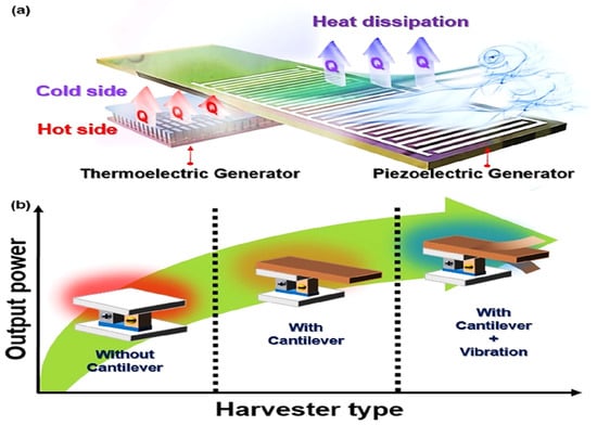 - Kim, S.-B.; Shin, J.; Kim, H.-S.; Lee, D.-G.; Park, J.-C.; Baik, J.M.; Kim, S.Y.; Kang, C.-Y.; Choi, W.; Song, H.-C.; et al. A Synergetic Effect of Piezoelectric Energy Harvester to Enhance Thermoelectric Power: An Effective Hybrid Energy Harvesting Method. Energy Convers. Manag. 2023, 298, 117774. [Google Scholar] [CrossRef]