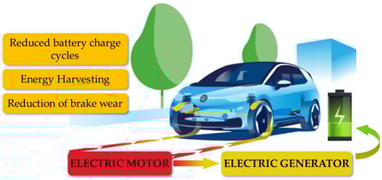 Mechanical harvesting is based on recovering the kinetic energy dissipated by the vehicle while driving; for instance, the earliest and still most widely used energy recovery technology harnesses a vehicle’s kinetic energy during braking by operating the electric motor in generator mode, thereby converting mechanical inertia into electrical energy while decelerating the vehicle. The energy dissipated by the suspension is an excellent source of energy for recovery; in fact, the suspension dissipates energy by absorbing shocks due to the roads’ irregularity. In this case, the recovery principle uses the movement of the spring–damper system to activate a mechanism capable of generating electricity. Another available energy source is the vibrations that propagate through the vehicle’s structure; this method exploits the nature of piezoelectric materials, which generate electricity that can power auxiliary devices or recharge batteries when stressed.