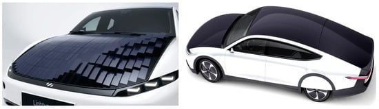 - Toyota Shows off Solar Prius with 860 W Output from 34% Efficient Cells. Available online: https://naturalsolar.com.au/solar-news/toyota-shows-off-solar-prius-with-860-w-output-from-34-efficient-cells/ (accessed on 5 January 2025).