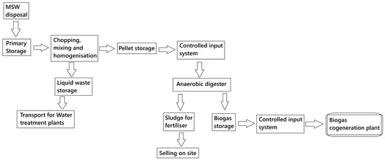 Ref. [11] describes the landfill used for the calculus and data analyses for the case study of the present paper. Figure 1 illustrates the whole system of the landfill, starting from the MSW reception till the conversion to gas and electricity. The liquid wastes are transported to municipal wastewater treatment plants nearby. The fertiliser from sludge is sold on-site.