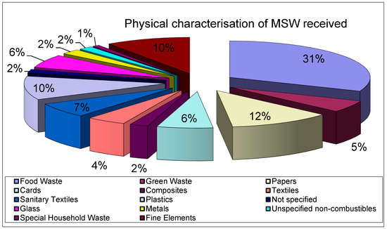 For the location of the MSW plant, the physical characterisation of the MSW received is illustrated in Figure 2.
