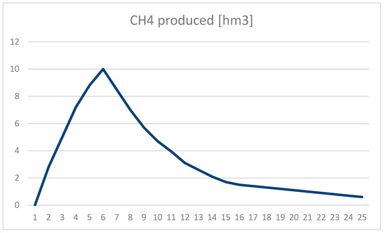 Figure 4 illustrates the amount of CH4 produced (in mhm3) for the period studied (25 years).