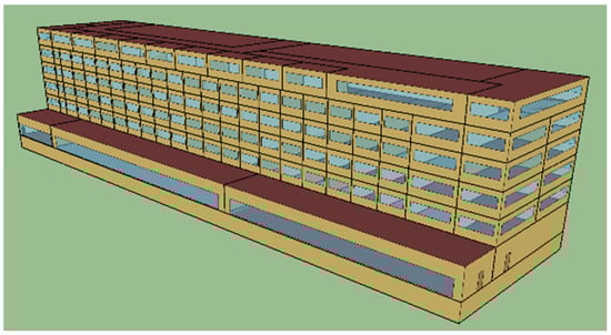 The building databases are sourced from the U.S. Department of Energy (DOE). The schematic diagram of building model is shown in Figure 3, which is a hotel with a total floor area of 11,345.29 m2. The main parameters of the building model are shown in Table 1.