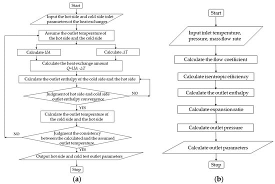 Calculation flowcharts. (a) Flowchart of calculation of heat exchanger. (b) Calculation flowchart of rotating machinery.