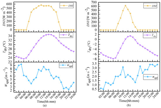 Weather data of typical days. (a) Typical summer day. (b) Typical winter day.
