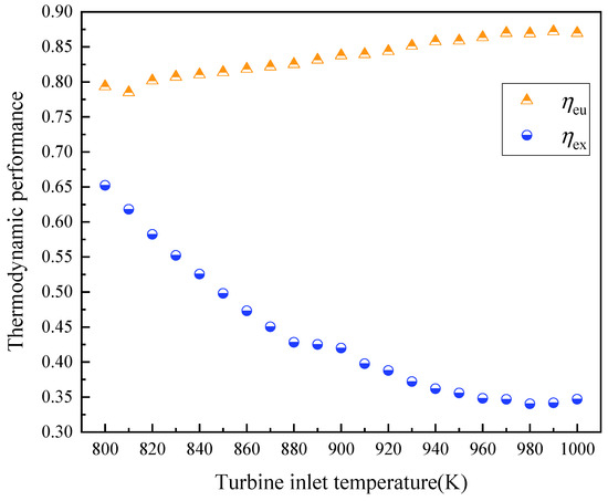 The variations in thermodynamic performance with turbine inlet temperatures.