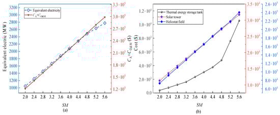 - The system performance under different solar multiples is analyzed, and the solar multiples is optimized with the levelized cost of electricity as the optimization objective. According to the variations in users’ demands and solar irradiance, the thermodynamic, environmental, and economic performance of the system under typical days and variable conditions are investigated.
