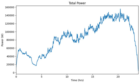 This model was also used to generate the total power consumed by 120 houses as shown in Figure 13. The power consumption of a residence pattern can be observed with higher loading values in the morning and evening. A number, 120, is used to represent the number of houses connected to a residential feeder in a Malaysian scenario.