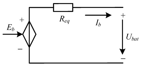 In this paper, a generic equivalent circuit model of the storage battery is selected [30]. The generic equivalent schematic is shown in Figure 3, which is constructed using a series connection of a controlled voltage source Eb as well as an equivalent resistance Req.