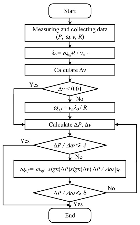 In this paper, the optimization algorithm is used. By combining the optimal tip speed ratio and the hill climbing method, not only can it quickly and stably track to the maximum power, but it can also make the wind turbine present a better tracking speed, dynamic characteristics, and steady state characteristics, thus improving the optimization algorithm control box, as shown in Figure 4.