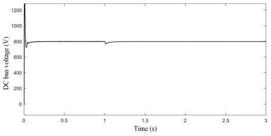 During the overall operation of the system, the DC bus voltage can be stabilized near the predetermined value by virtue of the control of the energy storage unit. Although the DC bus voltage fluctuates when the wind speed changes, the system can quickly recover and stabilize at the set value, and the variation curve of the DC bus voltage is shown in Figure 12. Through the simulation test of the energy storage system, the results show that the energy storage unit is able to maintain the stable operation of the system under the change of external environment.