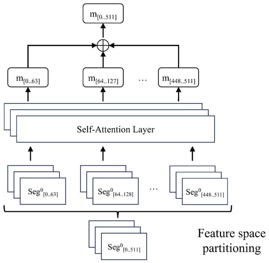 Since the vocabulary retrieved for each label may differ, this paper employs the Multi-Head Attention mechanism to integrate multiple word embedding representations under each label classification. As each word embedding has a dimensionality of 512, eight attention heads are used to split the word embedding vectors into sub-feature spaces of length 64 for separate fusion. Finally, the results are concatenated to form the complete word embedding representation. The word embedding fusion process is illustrated in Figure 7.