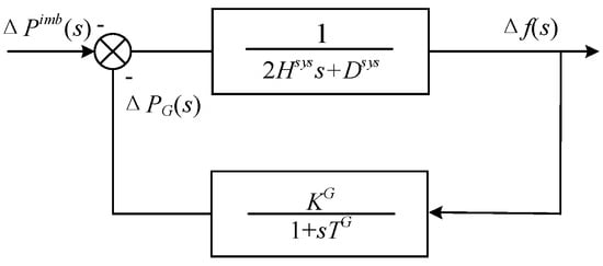 The center-of-inertia frequency response of the power system after a disturbance can be analyzed using the system frequency response model shown in Figure 1. The governor dynamics of diesel generators are modeled as a first-order inertial system [28].