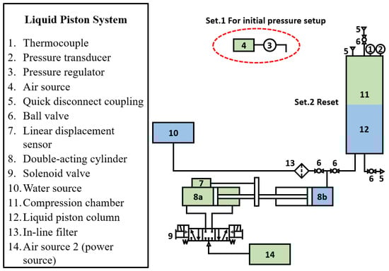 - Ahn, B.; Ro, P.I. Experimental Investigation of Impacts of Initial Pressure Levels on Compression Efficiency and Dissolution in Liquid Piston Gas Compression. Energies 2023, 16, 1921. [Google Scholar] [CrossRef]