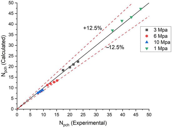 Under the system parameters outlined in Table 2, the numerical model presented in this study demonstrates strong concordance with the experimental data of Lu et al., exhibiting a deviation within ±12.5%. In this model, the two-phase flow is assumed to be a homogeneous mixture, without considering the slip effect between the gas–liquid phases. The first-order upwind scheme of the numerical method may reduce prediction accuracy. Additionally, calibration errors of the instruments during the experiments by Lu et al. may also lead to the generation of this error. However, the value of this error is within a reasonable range. As illustrated in Figure 3, the model effectively and conservatively predicts instability phenomena in parallel rectangular channels, substantiating its accuracy and reliability through thorough validation.