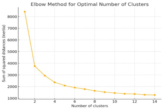 In cluster analysis, the vertical axis of the elbow plot typically represents the Sum of Squared Errors (SSE), which is the sum of the squared distances between data points and their respective cluster centers. As the number of clusters K increases, SSE gradually decreases. However, when K reaches a certain value, the rate of decrease in SSE levels off. This inflection point is referred to as the “elbow” and is used to determine the optimal number of clusters. Based on the plot, it is evident that the decrease slows down noticeably when the number of clusters is 4, making 4 the optimal number of clusters.