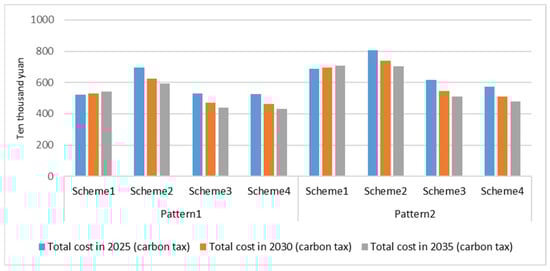 In the context of dual carbon goals, future energy consumption may be subject to carbon tax imposition. By 2030, the carbon tax could account for approximately 3% to 4% of the total cost, and by 2035, it may represent approximately 4% to 6% of the total cost. Furthermore, the carbon tax will have the most significant impact on Scenario 1, which solely relies on the grid electricity supply.