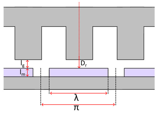 Dimensions for magnet and air-gap. In this figure, Dr is the rotor inner diameter and λ is the magnet arc.