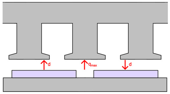 In the literature, it was highlighted that tooth tips could be used to alter the saliency ratio of FSCW machines [3,10]. This is accomplished by using tooth tips to capture ‘zigzag’ leakage flux from the PMs as they pass between stator teeth. The maximum point of q-axis current within a coil is when it is between two poles of a pole pair, which is 90° from the d-axis. If tooth tips are introduced, then they assist in capturing flux from the PMs at this point and, depending on the flux saturation in the tooth tips, can either increase or decrease saliency ratio. A diagram that demonstrates this maximum q-axis point can be seen in Figure 20.