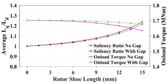 Impact of rotor shoe height on saliency ratio and onload torque.