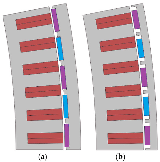 Salient machine topologies. (a) Lq/Ld = 1.15 and (b) Lq/Ld = 1.20.