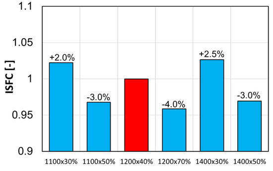 In Figure 5, a comparison among the ISFC of the non-diluted running conditions is reported. The values are expressed as percentage variation with respect to the “cruise” point.