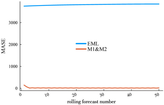 MASE performance of the proposed method and the EML against roll forecast number.