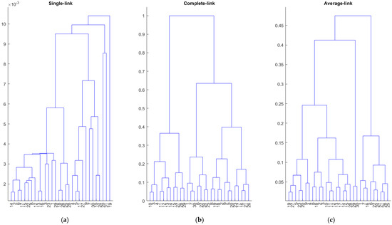 Energy consumption dendrograms. (a) single link; (b) complete link; (c) average link.