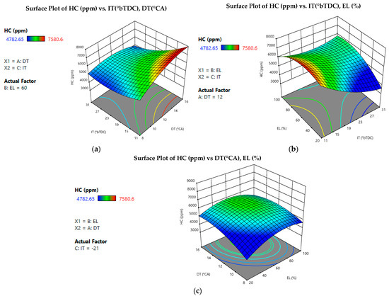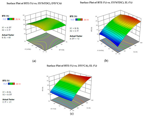 | EL (%) | DT | IT | BTE (%) | HC (ppm) | NOx (ppm) | |