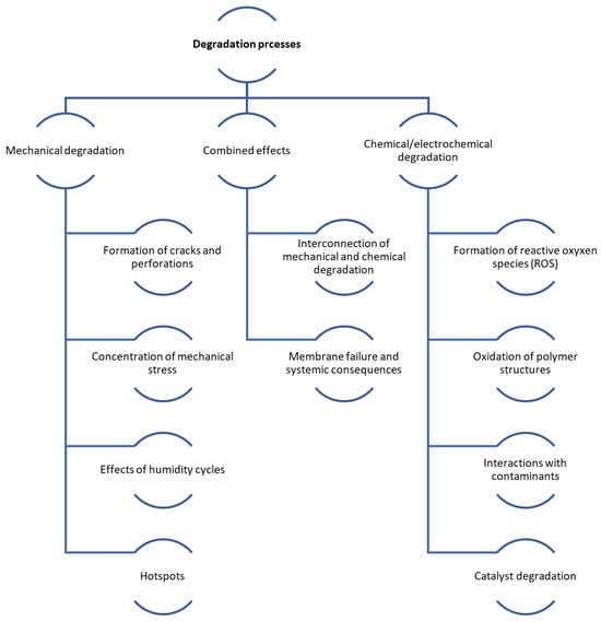 Scheme of mechanical and chemical degradation processes in PEMFCs.