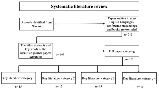 A systematic literature review methodology was adopted to search, identify, and analyze the literature. This is a comprehensive approach for evaluating the existing body of research work on a specific topic. The methodology is designed to collect, critically assess, and integrate the findings from multiple research studies, providing a clear understanding of the state of knowledge and identifying areas where further inquiry is needed [15]. In this study, a four-stage literature review strategy was developed and implemented (Figure 1). A detailed explanation is outlined in each sub-section as follows: