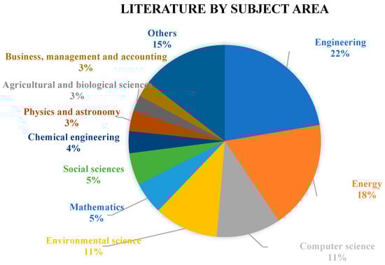 Figure 3 showcases the spread of 140 publications across various fields, showing a strong emphasis on Engineering and Energy, which represent 22.4% and 18% of the total publications, respectively. Computer Science and Environmental Science are also notable, each accounting for 10.9% of the output, illustrating their significant role in current research trends. Lesser but still meaningful contributions are seen in Mathematics and Social Sciences, each at 5.4%, followed by Chemical Engineering and Physics and Astronomy at 3.4% and Agricultural and Biological Sciences and Business Management and Accounting at 2.7%. The category labeled “Others”, which comprises 14.6% of the total, reflects a wide array of disciplines that contribute to the diverse academic fabric.