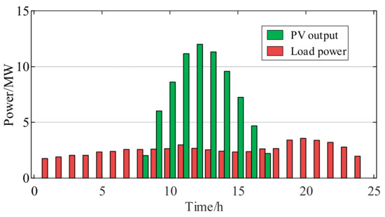 Waveform of daily load and PV output under PV output insufficiency scenario.