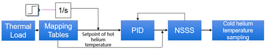 As illustrated in Figure 9 and Table 3, when the measurement of step response coefficients is affected by noise, higher-order FIR filters reduce the maximum deviation of cryogenic helium temperature, shorten the settling time, and enhance algorithmic robustness. These observations align with the conclusions derived from Equation (30). When the filter order is ≤10, the oscillation amplitude of the cold helium temperature exceeds acceptable limits, failing to meet system stability requirements. For filter orders > 20, the overshoot, however, remains nearly unchanged, and the reduction in settling time becomes marginal, indicating diminishing returns from further increasing the filter order. As shown in Equation (32), higher filter orders significantly increase computational load. Balancing computational complexity and real-time performance, the filter order should not exceed 20. Beyond this threshold, control performance improvements saturate, while computational demands continue to grow linearly. Therefore, a filter order of 20 is selected in this work.