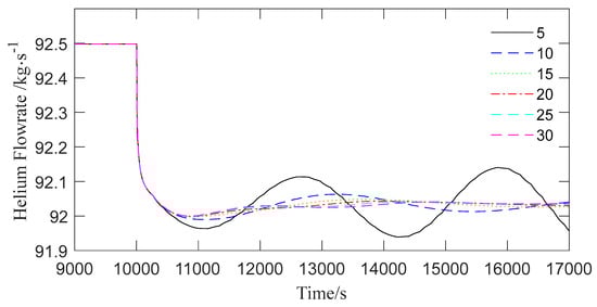 A −1 °C step change is applied to the cold helium temperature setpoint of the 1# NSSS, and the simulation results are shown in Figure 8. The control performance was primarily compared under four scenarios: