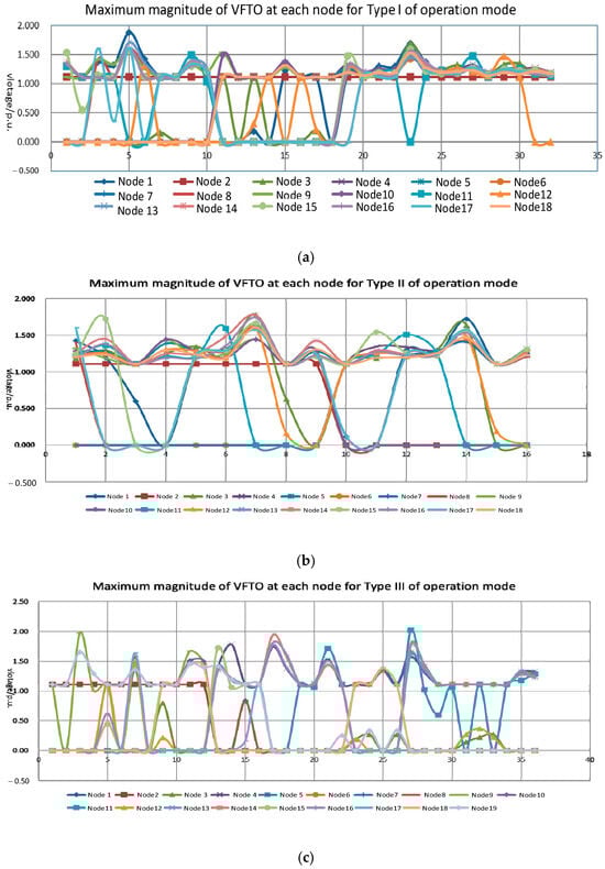 Effect of different operating modes on VFTO. (a) VFTO Amplitude for Type I Operation, (b) VFTO Amplitude for Type II Operation, (c) VFTO Amplitude for Type III Operation.