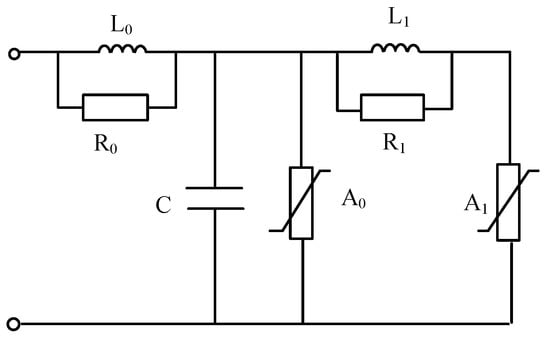 A metal oxide arrester (MOA) has excellent nonlinear volt-ampere characteristics and steep-wave response characteristics, so the addition of a MOA is a good overvoltage protection device. The lightning arrester method utilizes the nonlinear resistive property of a MOA under impact to suppress VFTO, so the research of the lightning arrester method focuses on the establishment of the equivalent model of a MOA. The International Conference on Large Grids Organization (CIGRE), Toshiba Corporation of Japan, and the Institute of Electrical and Electronics Engineers (IEEE) have proposed different MOA models through experimental validation [38,39,40,41]. A MOA model is shown in Figure 15.