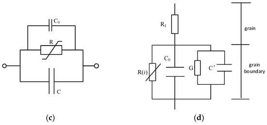 Xi’an Jiaotong University discussed the MOA model under steep wave impact [41], and concluded that the dynamic voltammetry and the time-delay characteristics of the grain boundary layer must be taken into account when establishing the equivalent model of MOA. Meanwhile, Xi’an Jiaotong University compared the simulated and measured values of the IEEE recommended model and the PINCETI model [42], and concluded that both models have high computational accuracy. The paper [43] summarized four MOA equivalent models: capacitance to ground, nonlinear resistance, nonlinear resistance considering the body capacitance and stray capacitance of the valve sheet, and MOA high-frequency transient model, as shown in Figure 16.