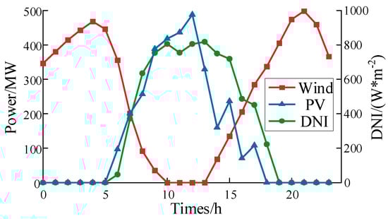 The predicted power and direct solar insolation (DNI) indices for wind power and photovoltaic power generation are shown in the Figure 4, and the relevant parameters for the photovoltaic power plant are shown in Table 1.