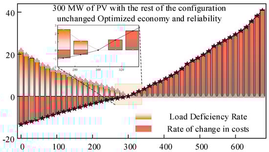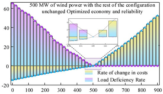 To study the impact of different capacity configurations on the reliability and economy of the system, this paper verified the reliability of the optimized configuration by analyzing the proportion of the load demand that cannot be met due to insufficient generating resources to the total demand, i.e., the proportion of the critical load loss, under different stochastic configurations, and verified the impact of the various configurations on the economy of the whole system utilizing the cost curves.