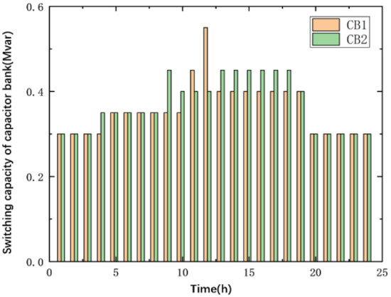Result of switching schedules of capacitor bank under the day-ahead time scale.