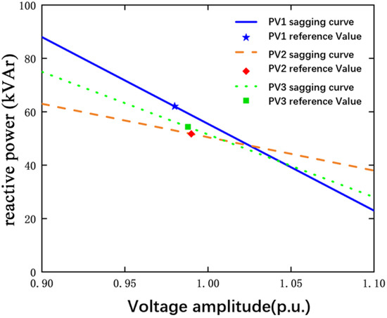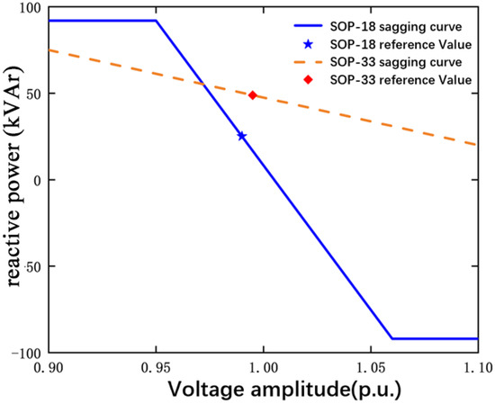 Using probability-based scenario generation, the hierarchical coordinated control model computes the reactive power reference values and optimal local droop curves for inverters and SOPs during the first scheduling cycle, as shown in Figure 10, Figure 11 and Figure 12.