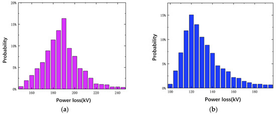 Power loss probability distribution before and after droop control. (a) Power loss probability distribution before droop control, (b) power loss probability distribution after droop control.