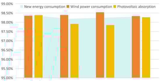 By analyzing Table 1 and Figure 2, which illustrate the participation of energy storage in renewable energy accommodation, it can be observed that under the hybrid energy storage strategy, the renewable energy accommodation rate of the power grid reaches 98.37%, which is 0.07% to 0.18% higher than that of single-type energy storage strategies.