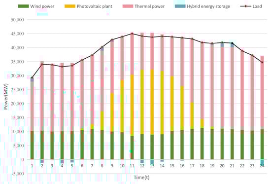 As a primary flexibility resource, energy storage can optimize the integration of renewable energy and improve its efficient utilization [17,18]. However, the high cost of storage remains a significant barrier to investment in energy storage facilities. With the continuous development and application of hybrid storage technology, the combination of multiple storage types offers an effective approach to enhancing power system flexibility and economic efficiency. By integrating different storage resources, hybrid energy storage systems can better adapt to variations in electricity demand and balance the volatility and intermittency of renewable energy [19,20]. This configuration approach fully leverages the advantages of various storage technologies, optimizes resource allocation, and enhances the overall economic efficiency of the system.