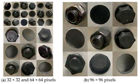 Consumer-grade cameras are employed to collect the images of bolt detachment defect. During the shooting process, the shooting angle, distance, and lighting conditions are varied to obtain as diverse images as possible. A total of 1000 bolt images are collected, as depicted in Figure 6. A small sample bolt image dataset is constructed for training the DCGAN network, thereby achieving the deep augmentation and expansion of the dataset.