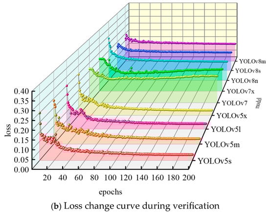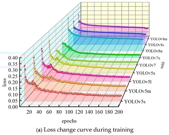 The loss function of the target detection model is composed of three parts: localization loss Lloc, confidence loss Lconf, and classification loss Lcls. The Lloc reflects the difference between the predicted box and the ground truth. The Lconf reflects the error of whether there is a target in the detection box. The Lcls reflects the difference between the predicted category and the real category, as shown in Equation (15) [54].